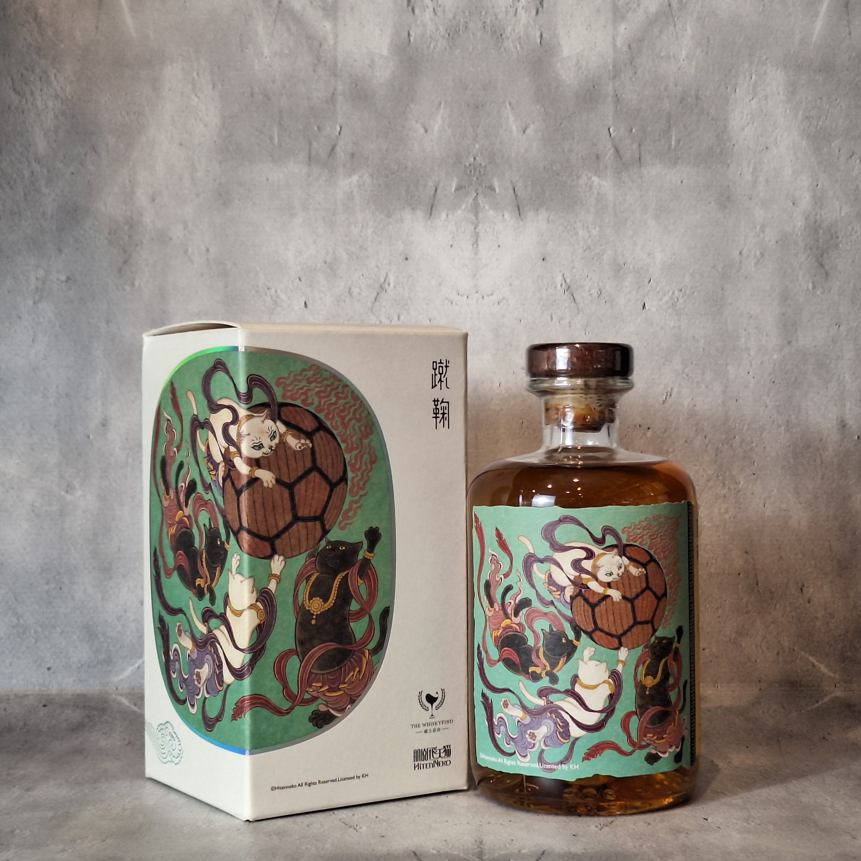 ラベルには、猫たちが中国の伝統的な球技「蹴鞠(しゅうきく)」を楽しんでいる姿が描かれています。